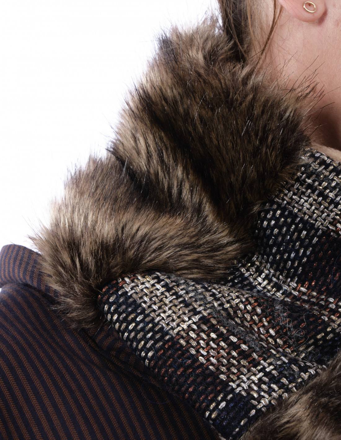 Nous avons mixé la fausse fourrure toute douce d'Aline avec les tissus à motifs et lainages d'Alchymia.