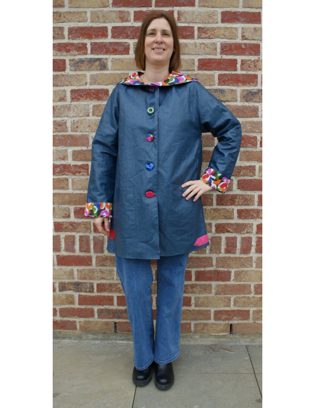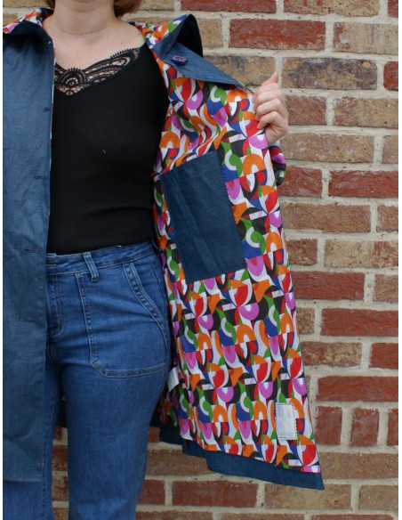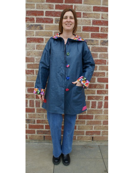 Imperméable en lin enduit original et confortable doublé en coton, présenté avec la doublure Shelsy, d'autres choix possible dans "couleur de la doublure".