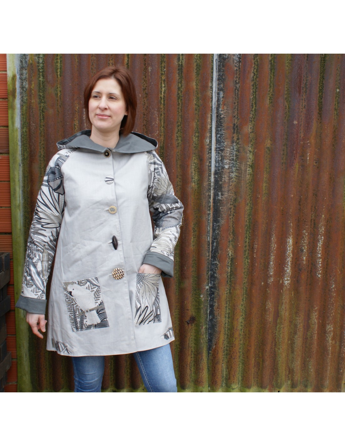 Armholes raglans in front of and back to be able to carry a jacket or a big pullover underneath, by keeping all its ease. Model at the middle-length, slightly flared with hood and wrist retroussable according to the length of your arms. Buttoned closure (every buttons is unique and can be different from the photo during the purchase, please specify with order if you have preferences between circle / square).
