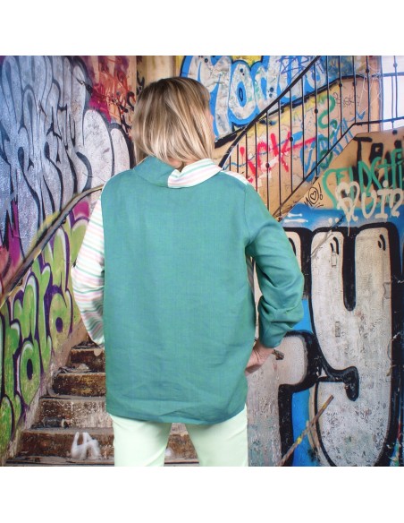 Manche retroussable, avec pâte boutonnée, 2 boutons différents.