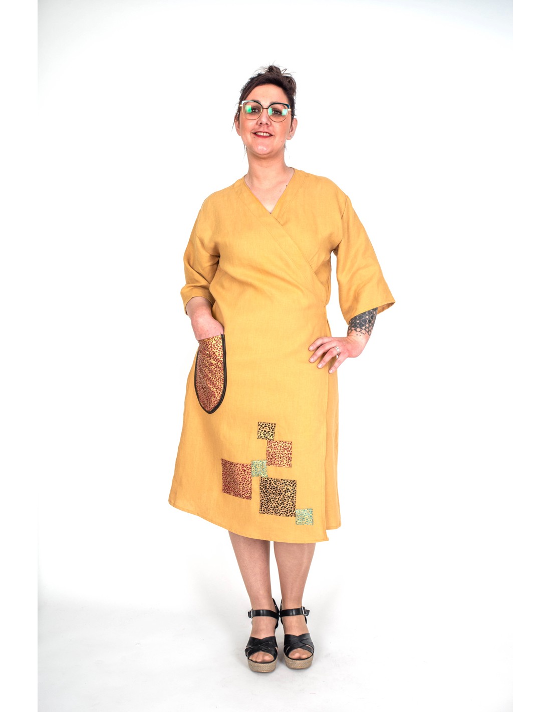 Robe portefeuille en lin, confortable et chic.